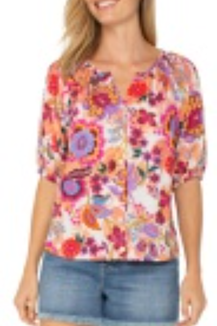 Short Sleeve Scoop Neck Top with Pleating Detail