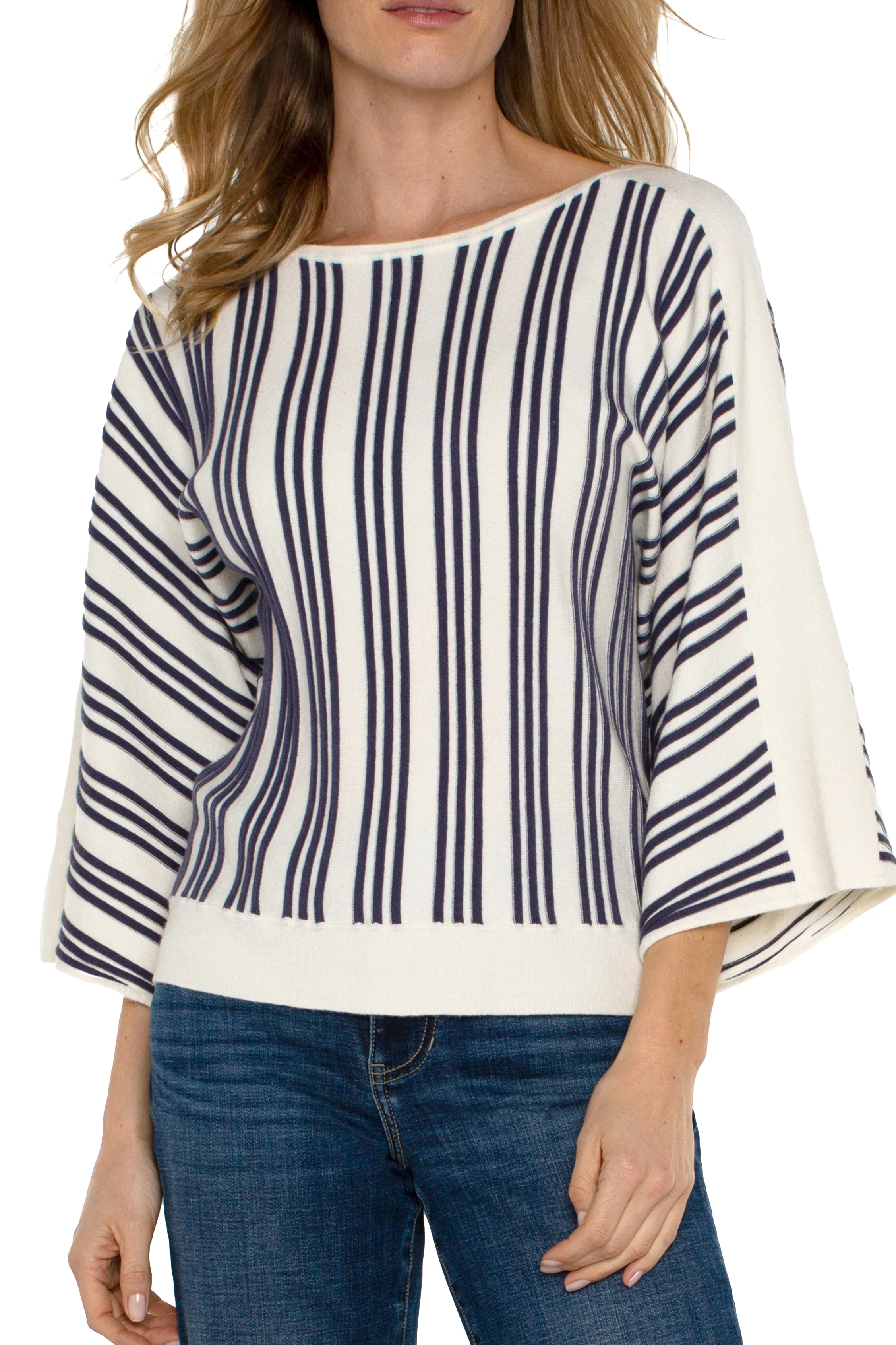 Our fully fashioned dolman sweater is perfect for trips to the coffee shop for your favorite Fall treat! 3/4 length sleeves and vertical stripes create perfect proportions adding visual interest to the body. Slip on this comfy sweater with jeans or trousers for effortless styling options.