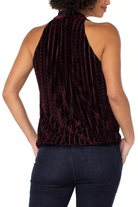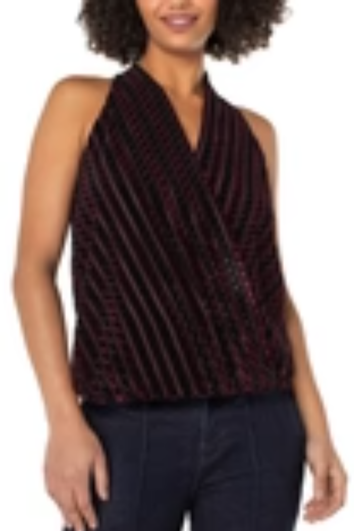 A sleeveless crossover silhouette with a softly draped neckline and hidden snap closure. Crafted in a fluid stretch knit for a sleek, comfortable fit. Pair it with the matching wide-leg pant for an effortlessly refined look.
