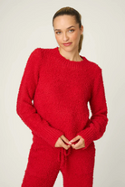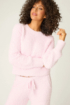 A soft boucle long-sleeve top with a classic crew neckline and a plush, textured finish for cozy layering. The Bundle Up Boucle Pink Long Sleeve Top has a slightly cropped silhouette and ribbed trims that pair perfectly with matching lounge bottoms. Designed by PJ Salvage, this piece reads like elevated loungewear ideal for relaxed days at home or casual weekend styling. Machine Wash Cold. Do Not Bleach. Tumble Dry Low.