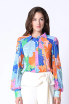 Crochet Trim Button Front Collared Print Shirt