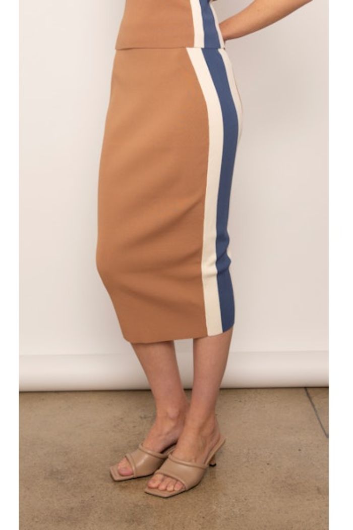 Achieve a sleek and sporty look with our Harlow Bodycon Varsity Skirt. Made with a bodycon fit, it hugs your curves for a flattering silhouette. The varsity detailing adds a touch of athleticism to this versatile skirt. Perfect for a day out or a night on the town.
