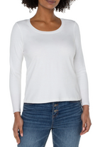 With its flattering scoop neckline and fluid drape, this long sleeve knit top brings ease and polish to everyday dressing. Crafted from a silky-soft blend with just the right amount of stretch, it’s a refined essential you’ll reach for again and again.