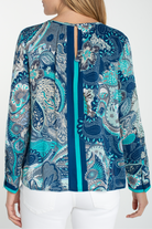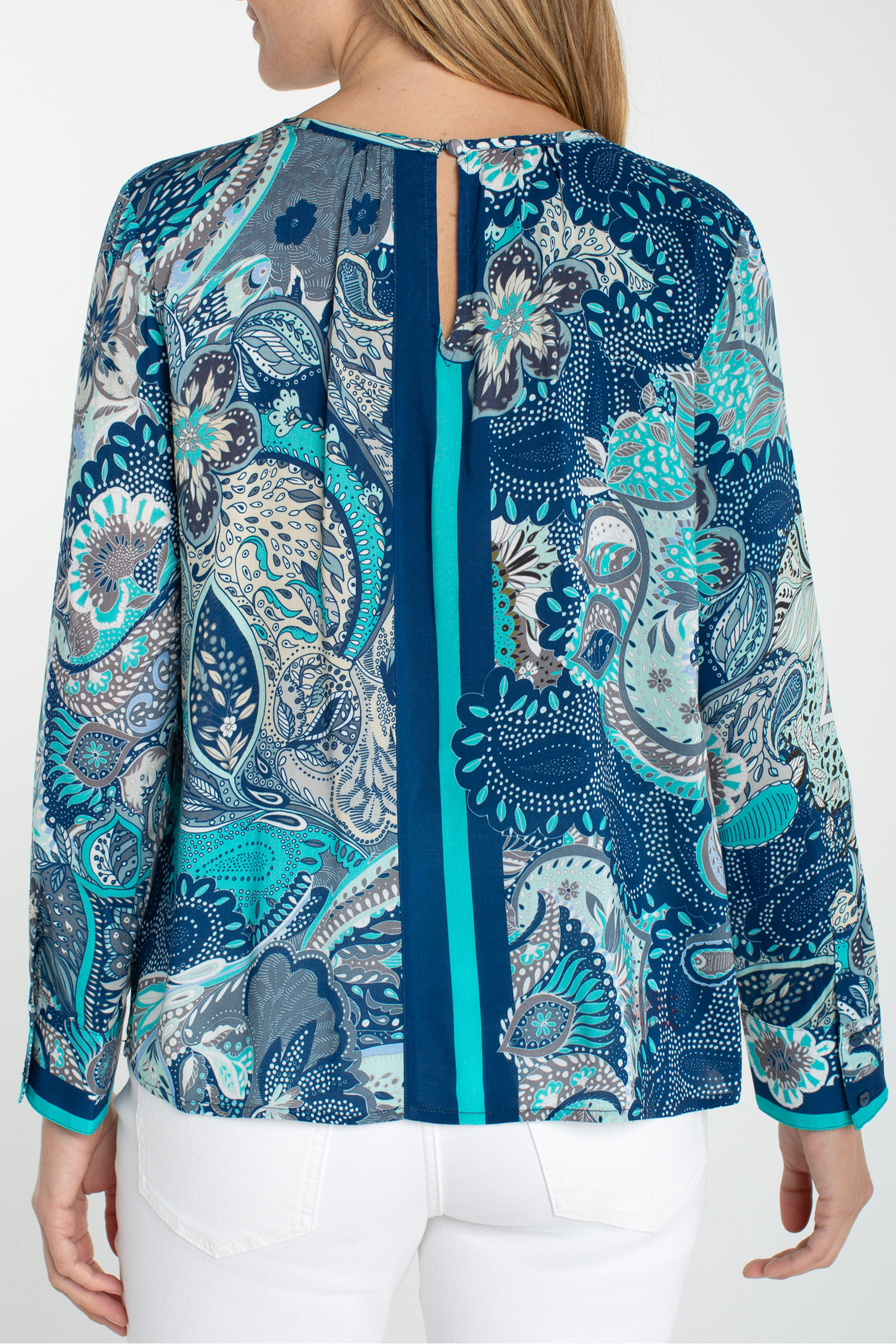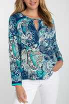 A breezy, patterned woven top featuring a keyhole neckline and long sleeves for effortless polish. The Long Sleeve Woven Top with Keyhole Neckline from Liverpool Los Angeles has a relaxed silhouette and lightweight woven fabric that drapes softly over the body. Bright paisley-inspired print and a subtle front keyhole make it an easy pick for both work days and weekend outings.