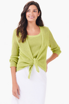 Our ultra versatile 4-way silhouette makes its mesh debut and makes a bold statement about what knitwear can be. We've updated our already light and airy bestseller that takes the breeziness to the next level: just make sure you're wearing an underlayer. Wear it tied, wrapped, twisted, or open. With an open front and a hem that sits at the hip. Mindfully made from fully fashioned knitwear to minimize textile waste.