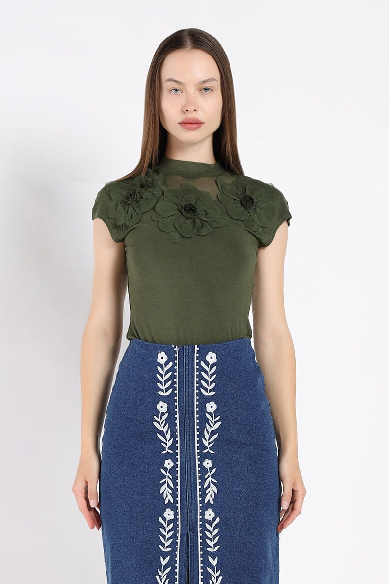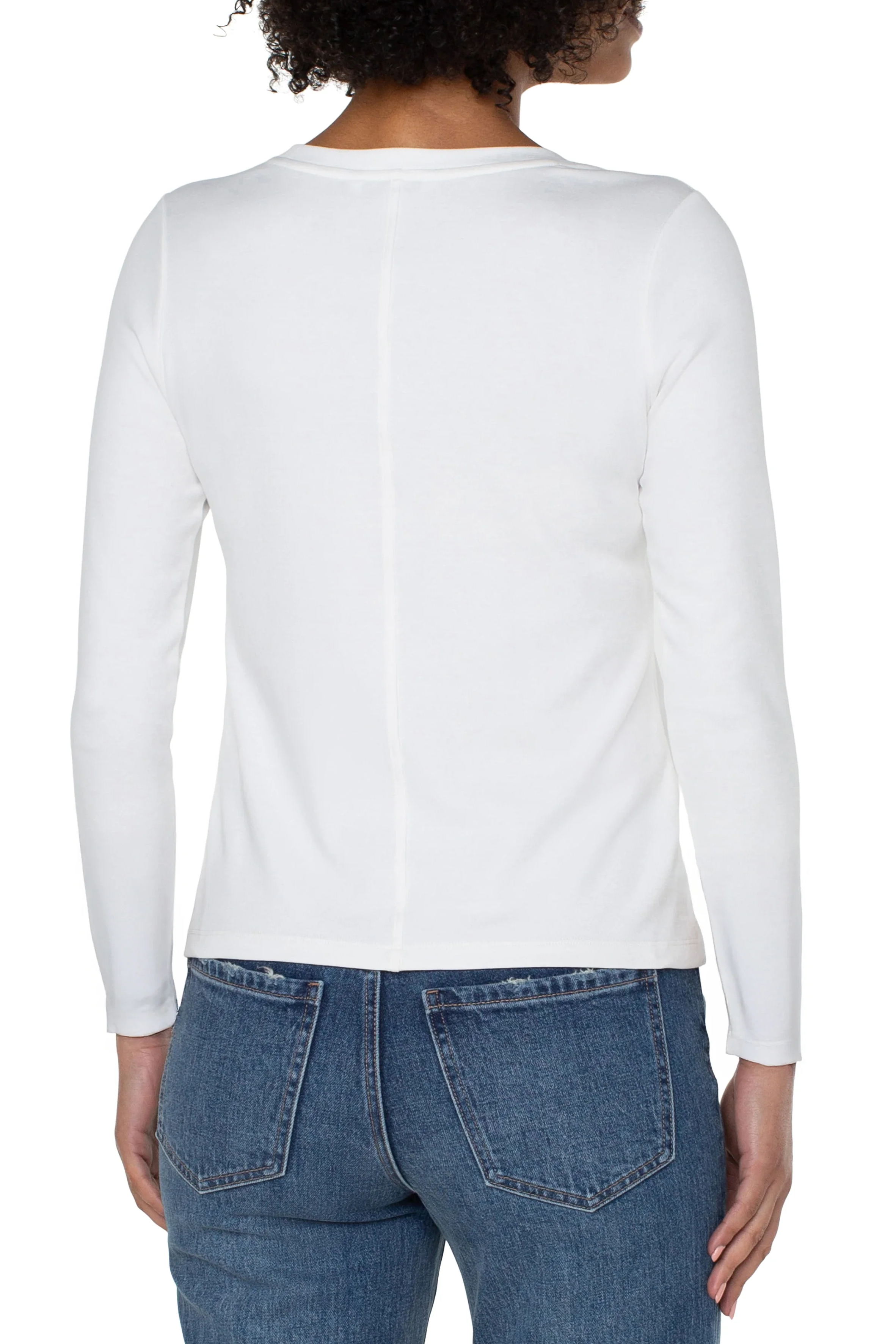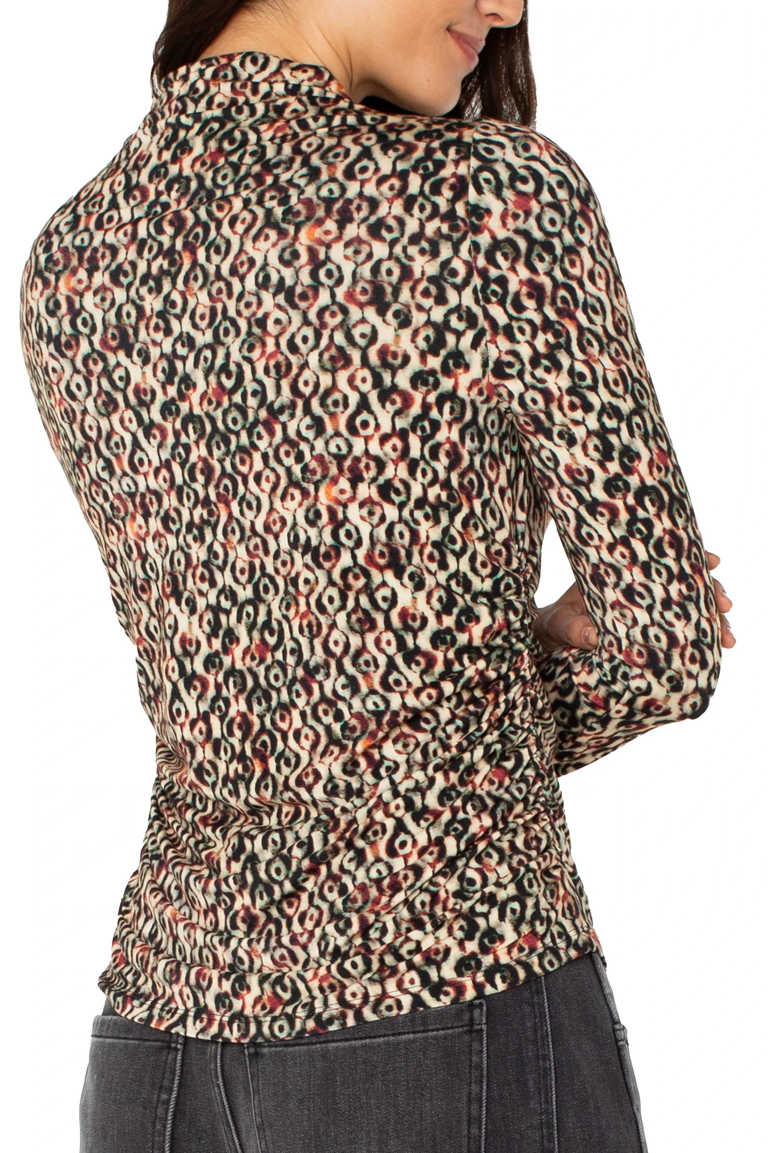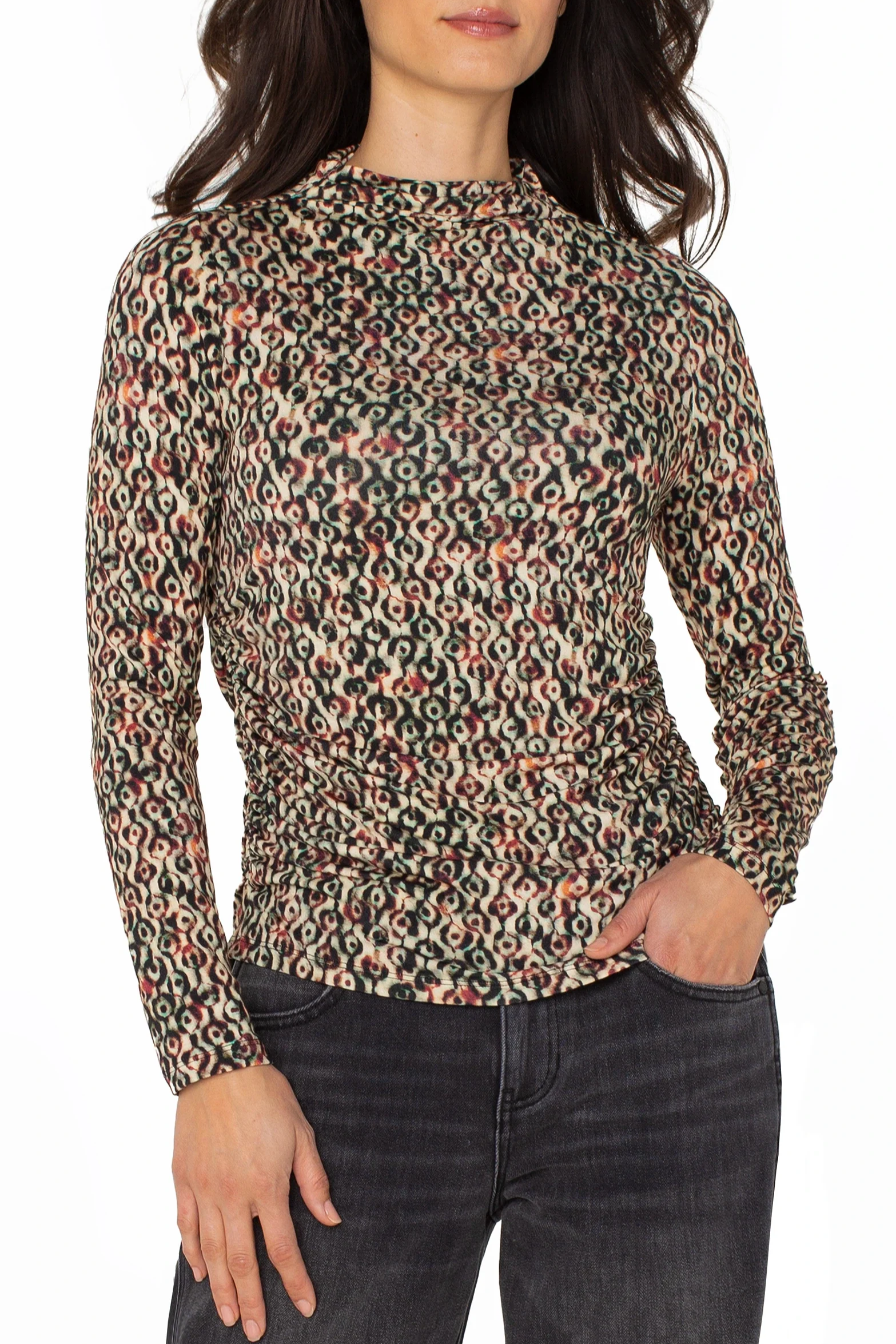 Long Sleeve Mock Neck Knit Top W/ Shirring
