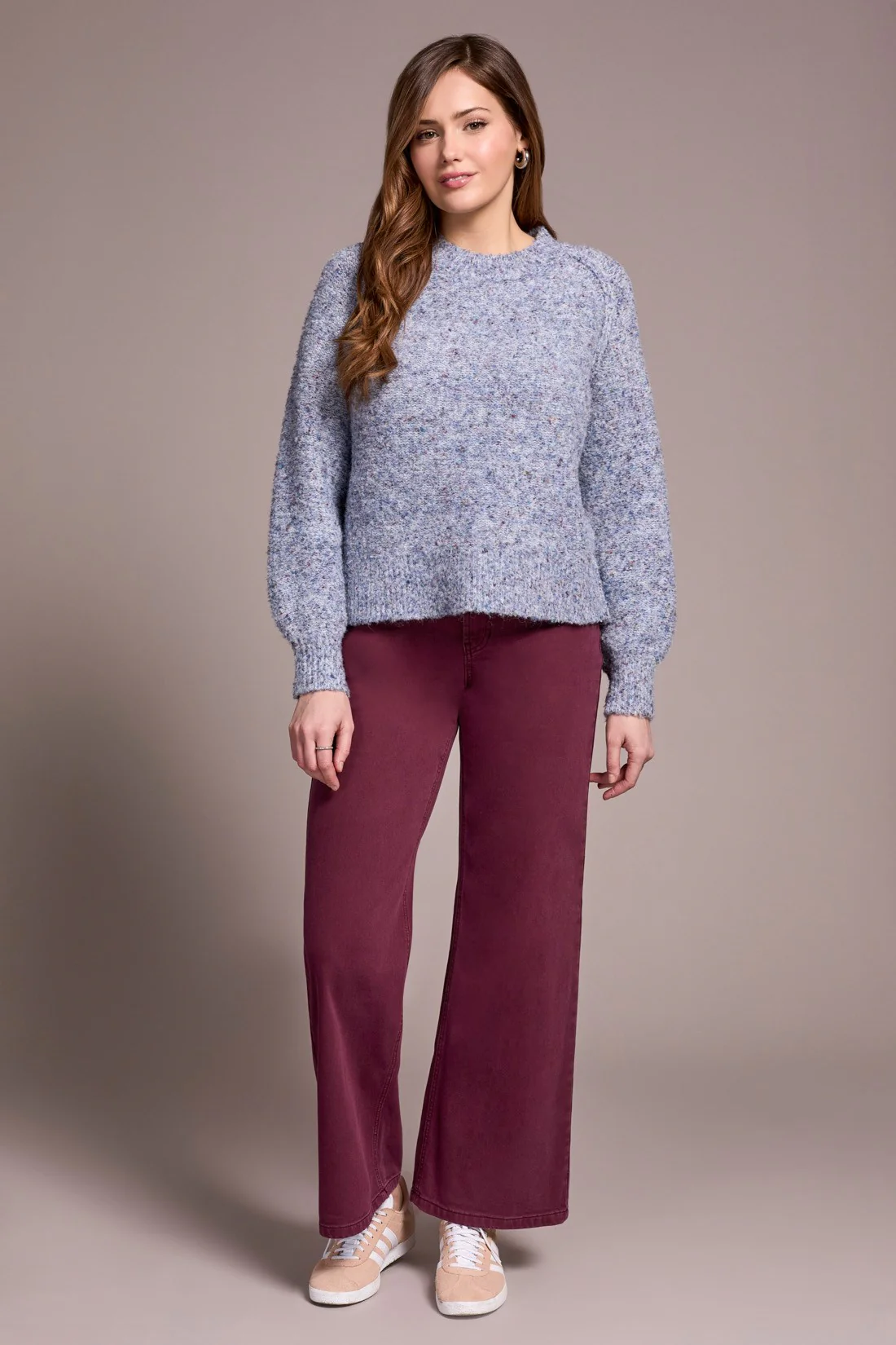 Boucle Long-Sleeve Crew Neck Sweater