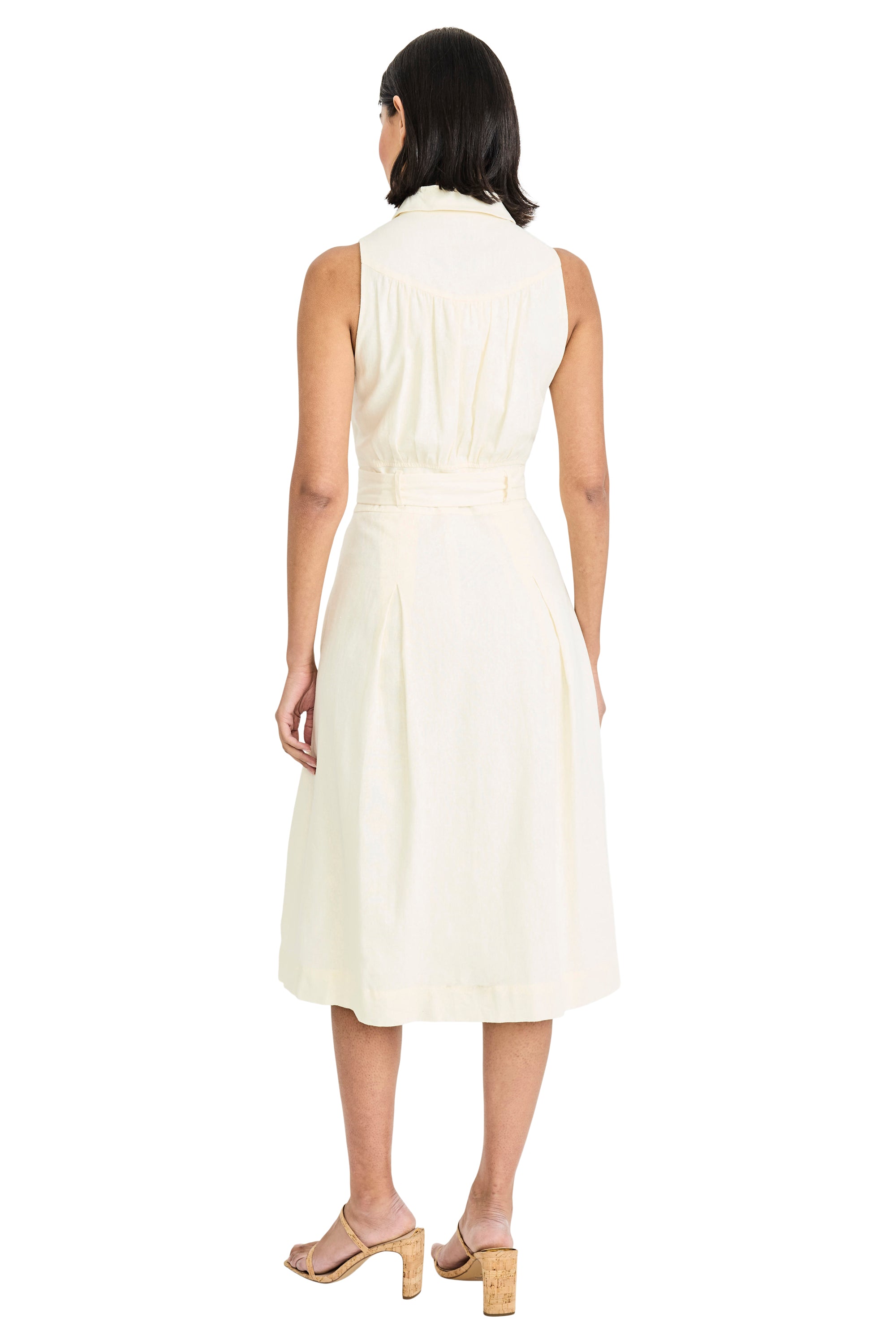 Devin Linen Collared V-Neck Midi Dress