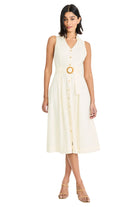 Lightweight and breezy with a button-front silhouette, this Devin Linen Collared V-Neck Midi Dress is a polished warm-weather staple. The sleeveless, collared design and belted waist create a flattering, classic shape that works for casual days or vacation outings. Designed by Maggy London, the dress pairs easily with sandals for an effortless, preppy look.