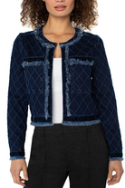 CollarlessFrayed EdgeVelvet TrimDiamond pattern