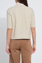 Made from Lurex Feather Yarn/Acrylic, this soft, transitional cardigan offers raglan short sleeves, a true-to-size fit, cropped length and button front. Detailing includes fluffy Gold Lurex Feather Yarn, a discrete Gold sheen, and ribbed cuffs, waist and neck.