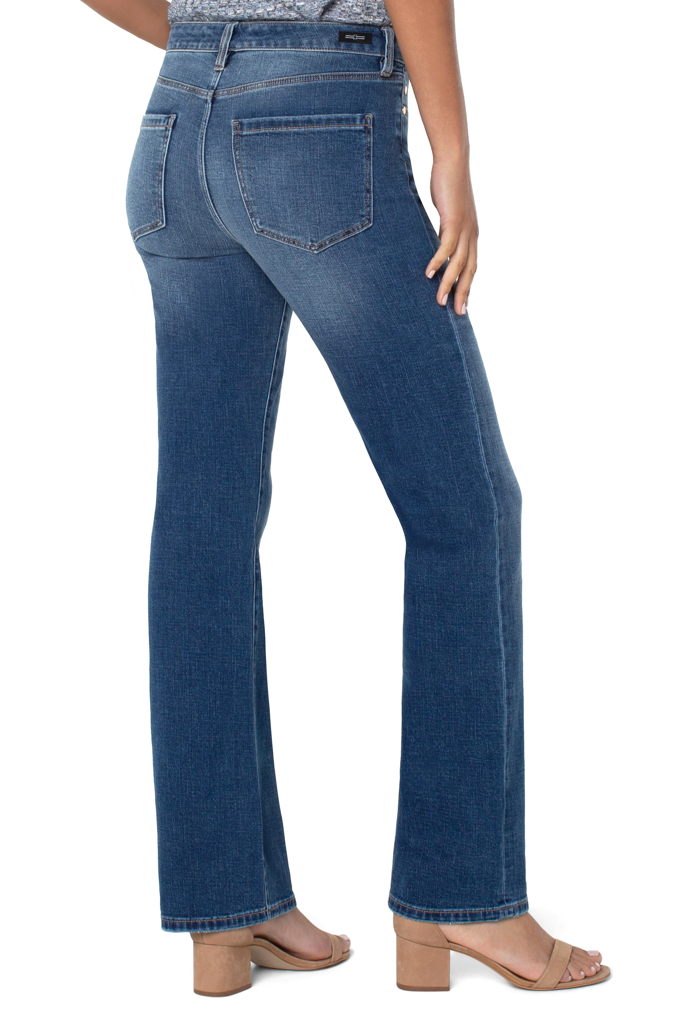 Mid-Rise bootcut jean in our must-have Yuba wash. Slim through the hips and thighs and releases at the knee and leg opening to create the beautiful bootcut shape.