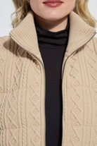Two puffer vests in one, the Petra REVERSIBLE Puffer Sweater Vest showcases Lightweight Vegan Suede on one side and Cozy Cable Knit sweater on the other. Quilted on both sizes, the Petra features a chunky rib collar, front Gunmetal zipper and binding at the arm holes and bottom.