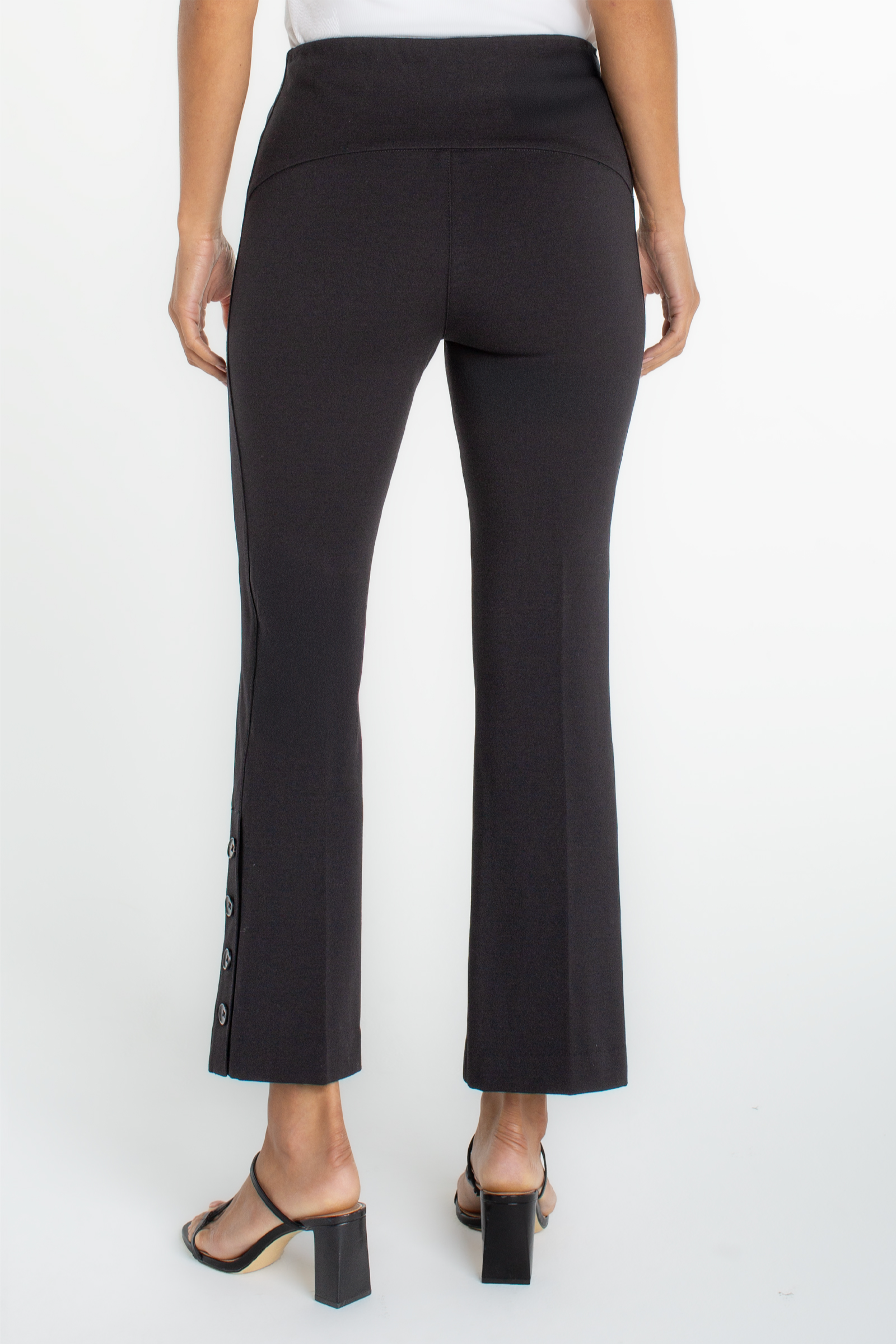 These Stella Kick Flare pants feature a fitted hip and a subtle kick flare hem with welt pockets for polish. The comfortable stretch fabric creates a streamlined silhouette that's easy to dress up or down. Liverpool Los Angeles designed them with a high rise and cropped-to-ankle length ideal for heels or flats. Wear them for work or casual outings when you want a modern, tailored look.