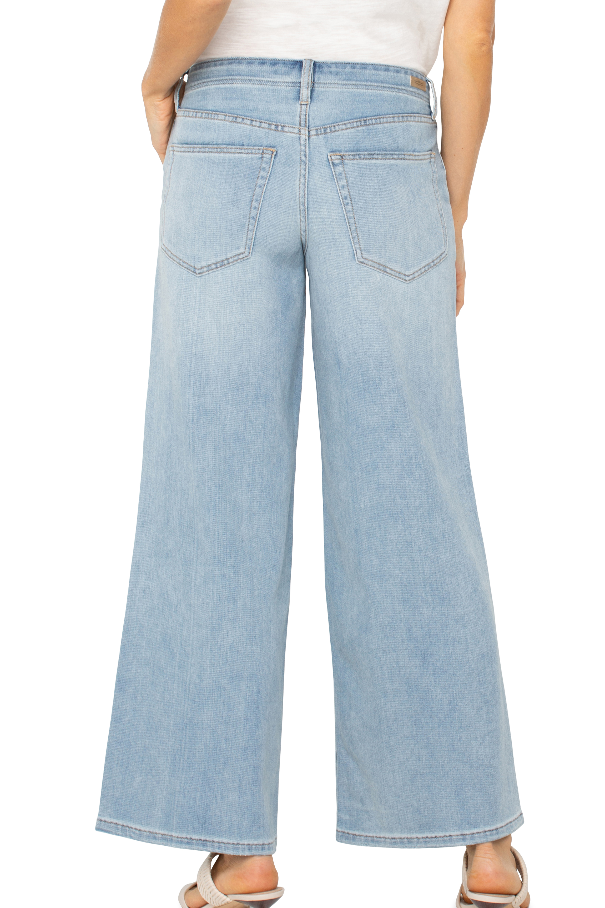 The Weekender Wide Leg 30" Inseam is a relaxed, wide-leg denim pant cut in a light wash for an easy-going silhouette. Liverpool Los Angeles designs this pair with a mid rise and a 30" inseam that skims the ankle for a modern, roomy fit. Soft-looking denim, front pockets, and subtle fading give it a casual, weekend-ready vibe. Pair it with sandals or a tucked tee for effortless warm-weather style.