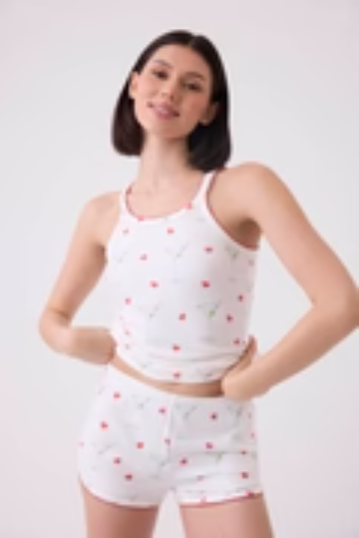 Embrace festive fun with this season in a ivory sleep tank, showcasing a cheerful martini glass pattern that celebrates the holidays. It's relaxed fit and cheerful design make it a delightful addition to your sleepwear collection.