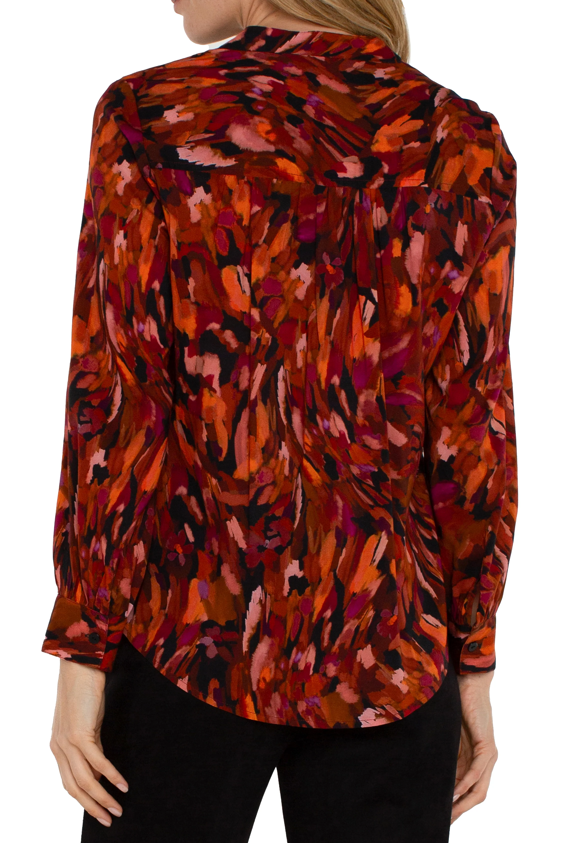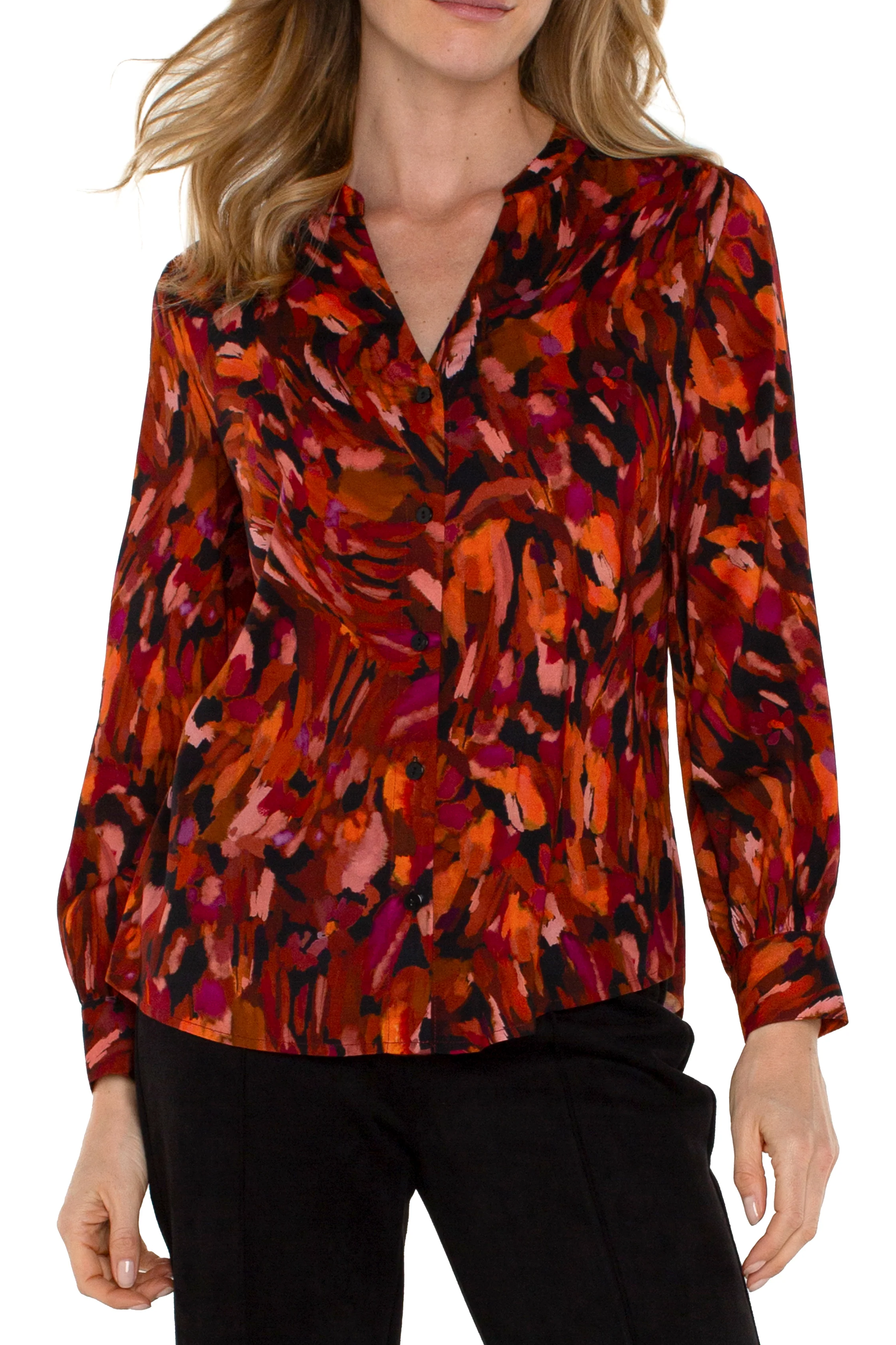 Designed to elevate your style with its unique print and thoughtful details. The banded collar adds a modern twist to the classic button-front silhouette, making this shirt a versatile choice for both casual and semi-formal occasions. Pair it with your favorite trousers for a more polished ensemble.