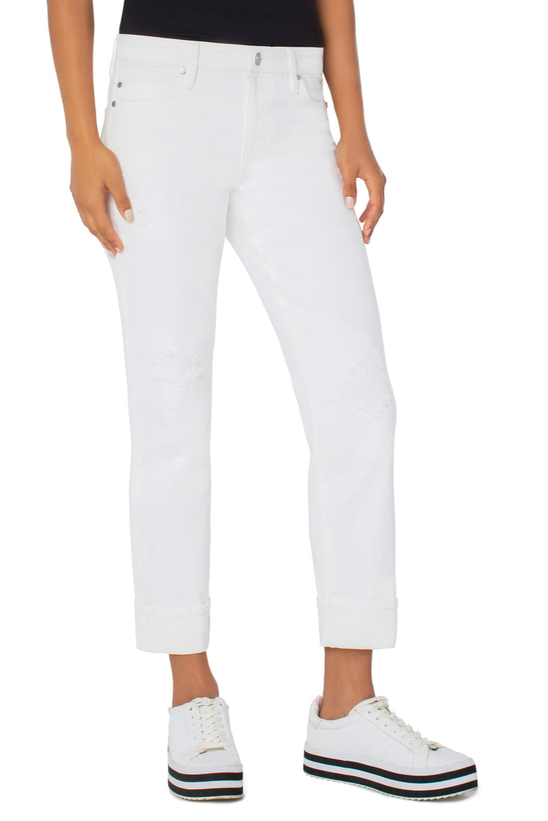 Marley Girlfriend Cuffed Distressed Denim