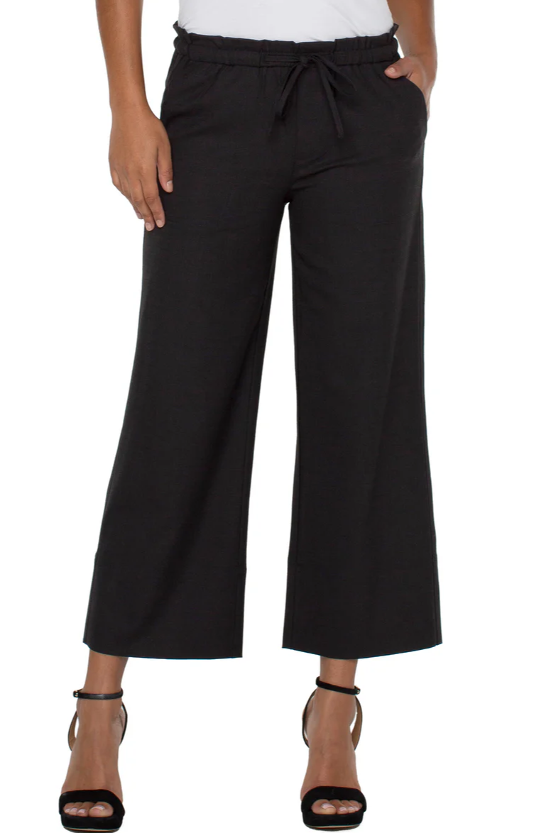this pull-on wide leg pant is comfortable and easy to wear. Super versatile, you can pair with a casual top, a denim jacket, and sneakers or make it a set to mix and match with our raglan knit top!