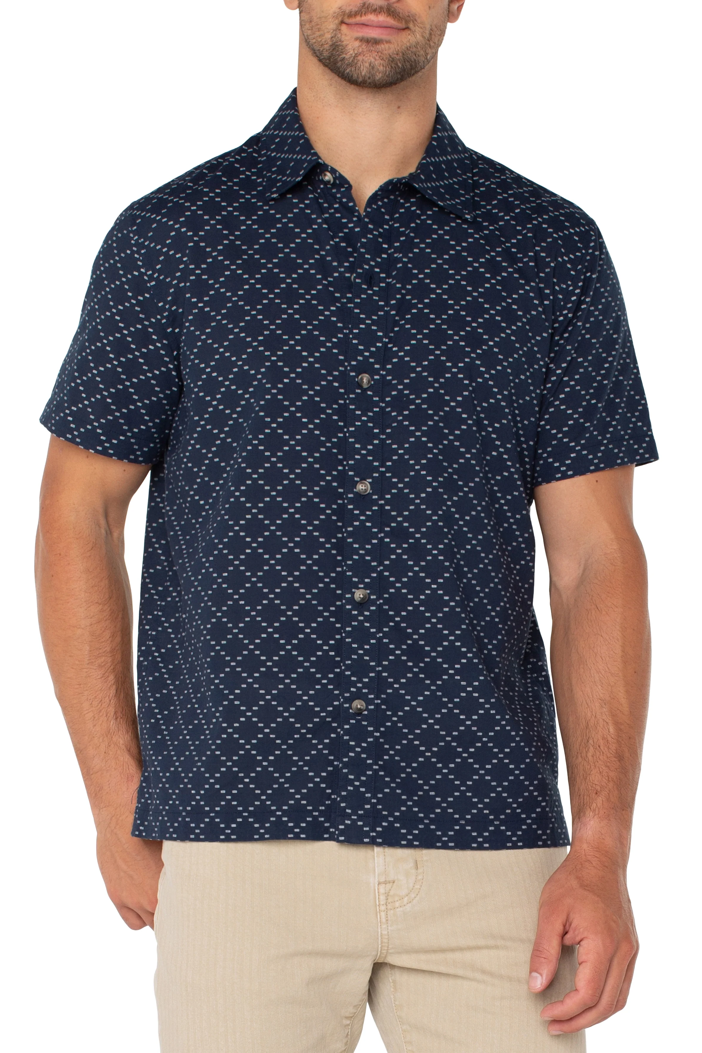 Get a modern and classic look with this printed short sleeve shirt. Its unique print makes it great for any occasion, and you can dress it down with shorts or jeans or dress it up with a blazer and chinos.